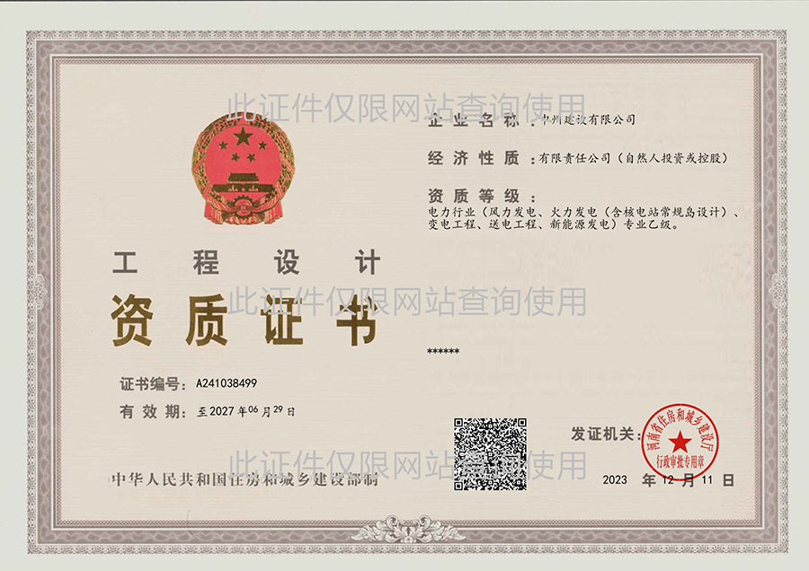 工程設(shè)計(jì)資質(zhì)證書(電力行業(yè)類)