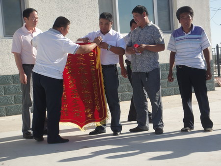 2011年8月19日,新能源京能赤峰翁牛特旗旗桿風(fēng)電場(chǎng)綜合樓院內(nèi)鞭炮齊鳴,鑼鼓喧天,風(fēng)電場(chǎng)所在地翁牛特旗梧桐花鎮(zhèn)下洼村黨支部書記、村委會(huì)主任及村民代表一行共九人給風(fēng)電場(chǎng)送來了錦旗。