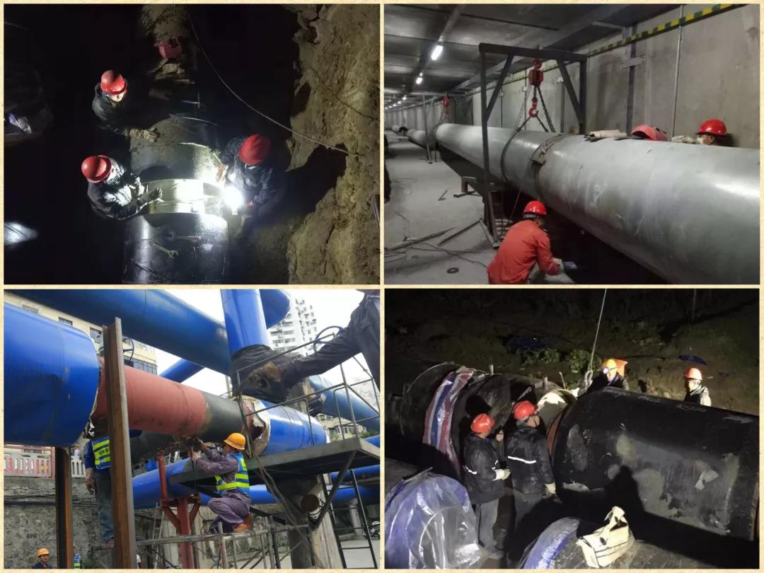 在施工高峰期,工地達(dá)到了500多人,建設(shè)者們翻山越嶺,過河穿橋,扎進(jìn)管廊,他們開啟“5+2”、“白+黑”的工作模式,頂住酷暑寒冬,放棄節(jié)假日,一心一意只為盡快完成熱網(wǎng)建設(shè),讓溫暖輸送到每一個(gè)用戶。遇到坡度達(dá)70多度的山坡施工,他們6人一組將200多公斤重的管道托架抬到現(xiàn)場(chǎng),用手動(dòng)滑輪倒鏈將3.3噸重的鋼管一點(diǎn)點(diǎn)拖拽上去。