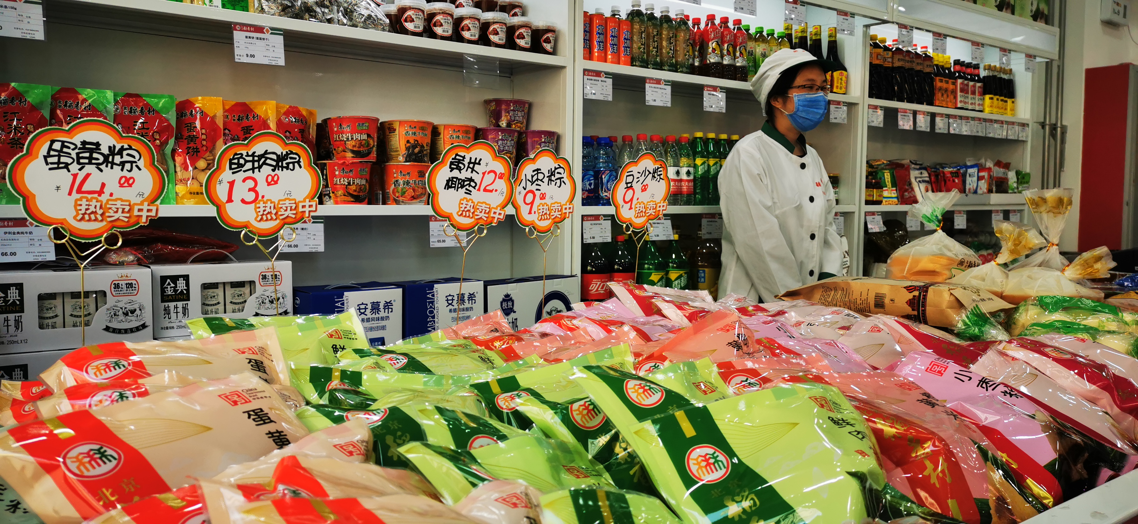 今年受疫情因素影響,人們的生活需求和購(gòu)買(mǎi)需求發(fā)生了一定變化。西城分公司稻香村門(mén)店順應(yīng)這一市場(chǎng)要求,及時(shí)調(diào)整營(yíng)銷(xiāo)思路,在展臺(tái)的搭建和商品的選擇上進(jìn)行了一系列改進(jìn):一是應(yīng)對(duì)人們減少出門(mén)探親走訪的特點(diǎn),取消了往年占據(jù)展臺(tái)主力位置的各種禮盒型商品,取而代之的是可以自由選擇口味和數(shù)量的自裝粽子禮盒,更親民更有選擇性;二是展臺(tái)突破以往標(biāo)識(shí)規(guī)范,采用立式POP標(biāo)簽的形式,將不同口味、價(jià)格的商品更為突出的展示出來(lái),更具可視性和吸引力;三是針對(duì)大眾對(duì)安全性的特殊心理需求,擴(kuò)大粽葉、江米、小棗、豆沙和棗泥等制作輔料的展區(qū),使更多顧客享受到稻香村的濃情粽香。