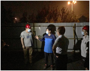 7月2日夜間,北京市門(mén)頭溝區(qū)區(qū)長(zhǎng)付兆庚、副區(qū)長(zhǎng)趙北亭以“四不兩直”形式檢查指導(dǎo)京能建設(shè)門(mén)頭溝區(qū)永定鎮(zhèn)集體租賃住房項(xiàng)目。建設(shè)單位有關(guān)領(lǐng)導(dǎo)和項(xiàng)目負(fù)責(zé)人、施工項(xiàng)目執(zhí)行經(jīng)理席曉宇、安全總監(jiān)馮永柱等陪同檢查。