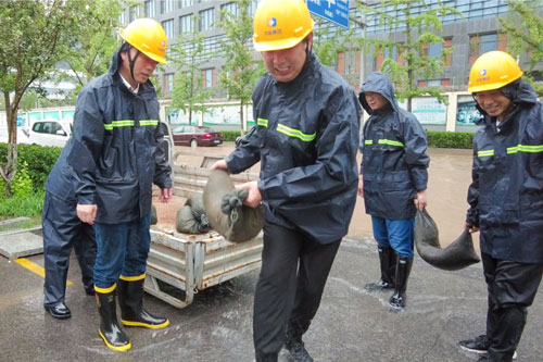 京煤物業(yè)門城物業(yè)分公司召集防汛救援隊員12人,帶好救援繩索及其他救援工具向門頭溝區(qū)教堂附近出發(fā),參與救援被困公交車人員。行進中淤泥沒過腳腕,洪水達到膝蓋,但他們沒有絲毫畏懼和退縮。